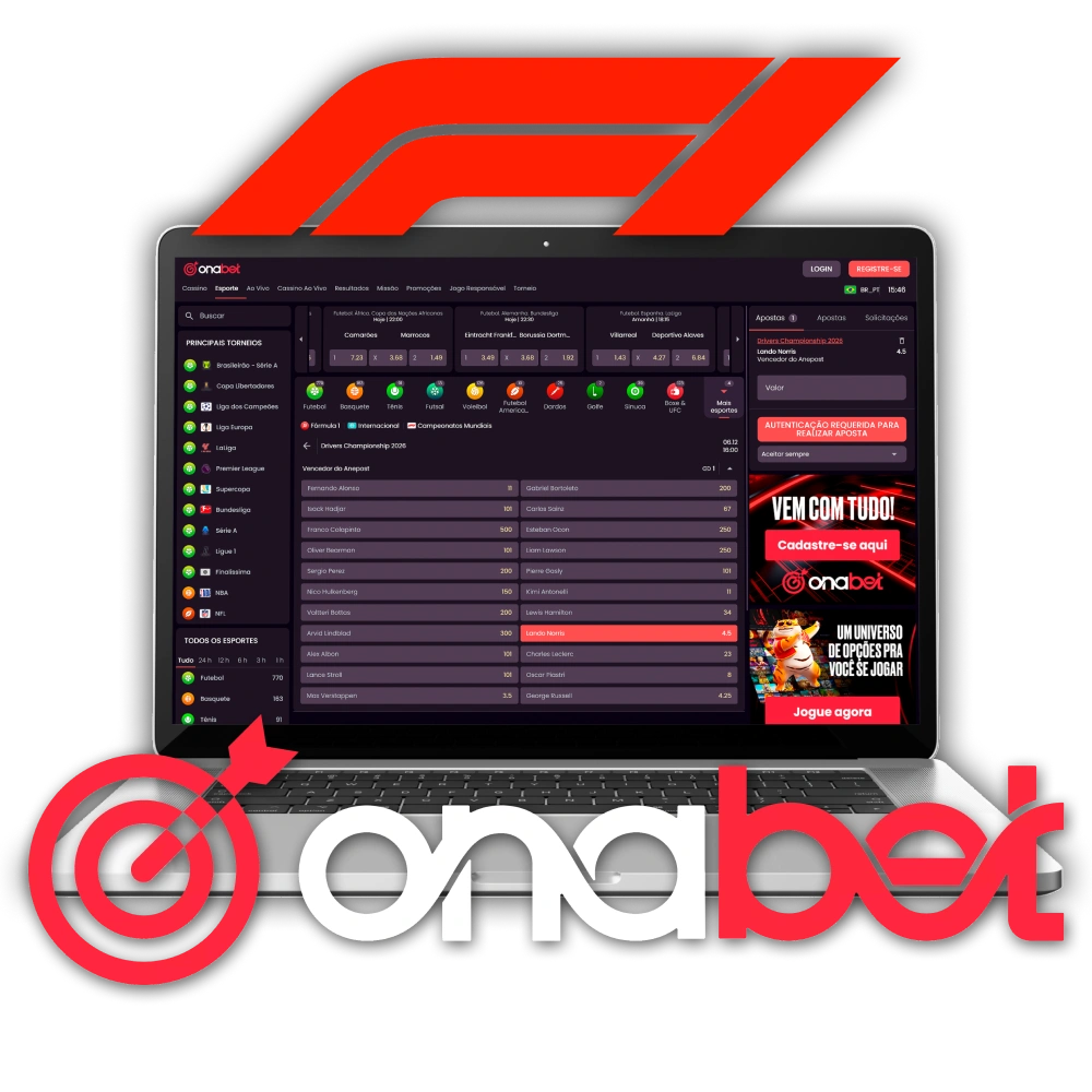 A seção de Fórmula 1 da Onabet oferece apostas em corridas, vencedor de campeonato, duelos entre pilotos e mercados ao vivo em cada Grande Prêmio. Você confere odds de F1 atualizadas em tempo real e pode montar múltiplas em poucos toques, no site ou no app. Novos usuários contam com um bônus de boas-vindas para esportes que também pode ser usado nas apostas de Fórmula 1.